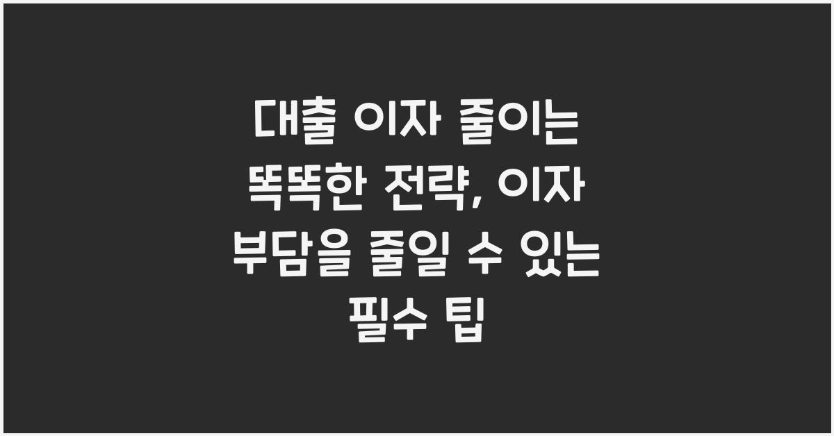 대출을 받는 것은 이제 많은 분들이 선택하는 일상이 되었습니다. 하지만 대출의 이자 부담은 언제나 고민거리인데요. 제가 처해 있던 상황에서, 어떻게 대출 이자를 줄일 수 있는지 다양한 전략들을 경험하게 됐습니다. 이 글을 통해 여러분도 대출 이자 줄이는 똑똑한 전략을 통해 부담을 덜어보길 바랍니다.