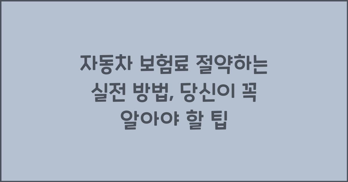 자동차 보험료가 매년 지속적으로 올라가면서 많은 운전자가 고민하고 있는 것은 사실입니다. 저 또한 여러 번의 보험 갱신을 통해 같은 어려움을 겪어왔습니다. 그래서 자동차 보험료 절약하는 실전 방법과 특약 활용 전략을 제가 경험한 사례를 바탕으로 공유하고자 합니다. 궁금하신 분들은 계속 읽어주세요!