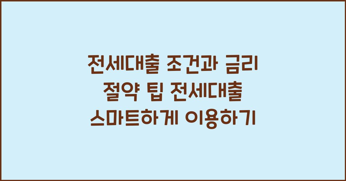 전세대출을 스마트하게 이용하는 방법이 궁금하신가요? 이 글에서는 전세대출 조건과 금리 절약 팁을 통해 현명한 선택을 하는 방법을 안내해 드립니다!