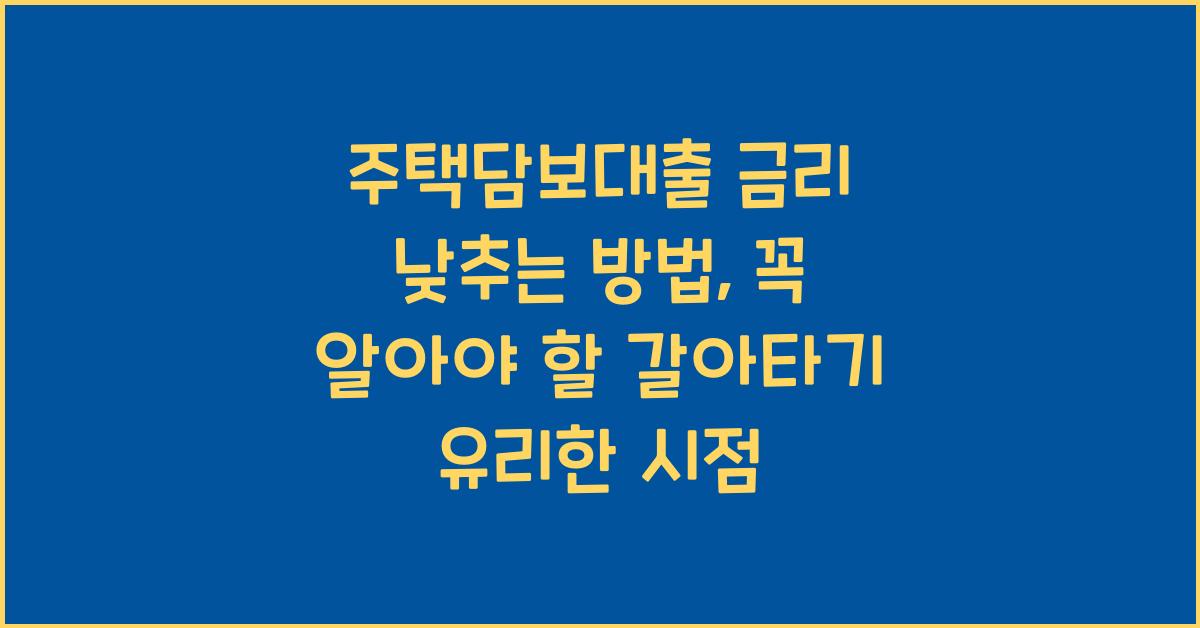 주택담보대출을 이용하는 많은 분들이 금리를 낮추고 싶어합니다. 저도 최근에 대출을 갚다보니, 금리 상승에 따른 부담이 느껴졌습니다. 과연, 주택담보대출 금리 낮추는 방법에는 어떤 것들이 있을까요? 갈아타기 유리한 시점을 알려드리며, 꼭 확인해야 할 팁을 공유하겠습니다.